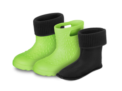Hrejivá vložka čižiem je vyberateľná, takže sú vhodné pre všetky štyri ročné obdobia. Sú vyrobené z EVA peny, takže sú dostatočne poddajné a flexibilné. V hornej časti sa nachádzajú po oboch stranách výrezy, pomocou ktorých je možné ľahšie natiahnuť čižmu na chodidlo dieťaťa. Podrážka má výrazný grip, ktorý znižuje riziko pošmyknutia na mokrom alebo nerovnom teréne. Čižmy sú vyhotovené v univerzálnej, výraznej zelenej farbe, čím sú vhodné pre chlapcov aj dievčatá a ponúkame ich v širokej škále veľkostí.