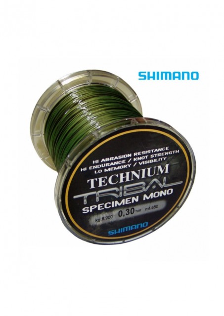 Špeciálny kamuflážny vlasec Shimano Technium Tribal je známi svojou kvalitou a charakteristickou konštrukciou troch jadier. Koeficient prieťažnosti 12 % zlepšuje presnosť pri nahadzovaní a lepší kontakt pri zdolávaní ryby. Odoláva hrubému zaobchádzaniu a vykazuje veľkú odolnosť voči oderu.Relatívne malý priemer napomáha dlhším hodom ,takže ak prejdete z 0,28 na 0,30 nestratíte na dĺžke hodu,ale získate vyššiu odolnosť proti pretrhnutiu.